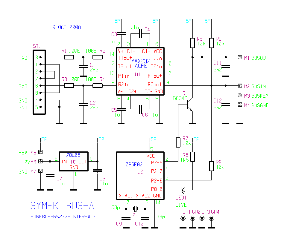 | BUS converts the +/- 10 volt RS232 level to the 0v/5v level of the SHACKBUS BUSIN wire | |