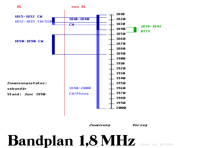 European / German Amateur Radio Frequency Bands (1996)