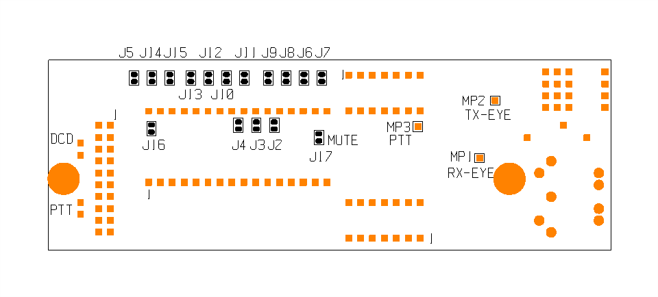 4 jumpers for PTT-keying, bit-Error-test, FSK/GMSK filter and spare filter select. Setting of output voltage with a 20 turn trimmer.