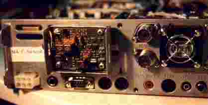4. The demodulator output (terminal M63, data out) goes to a spare pin of an acessory connector and to the 'demod' input of a receiving packet-radio-controller with 38400 Baud receive modem. Use a thin shielded audio cable.
